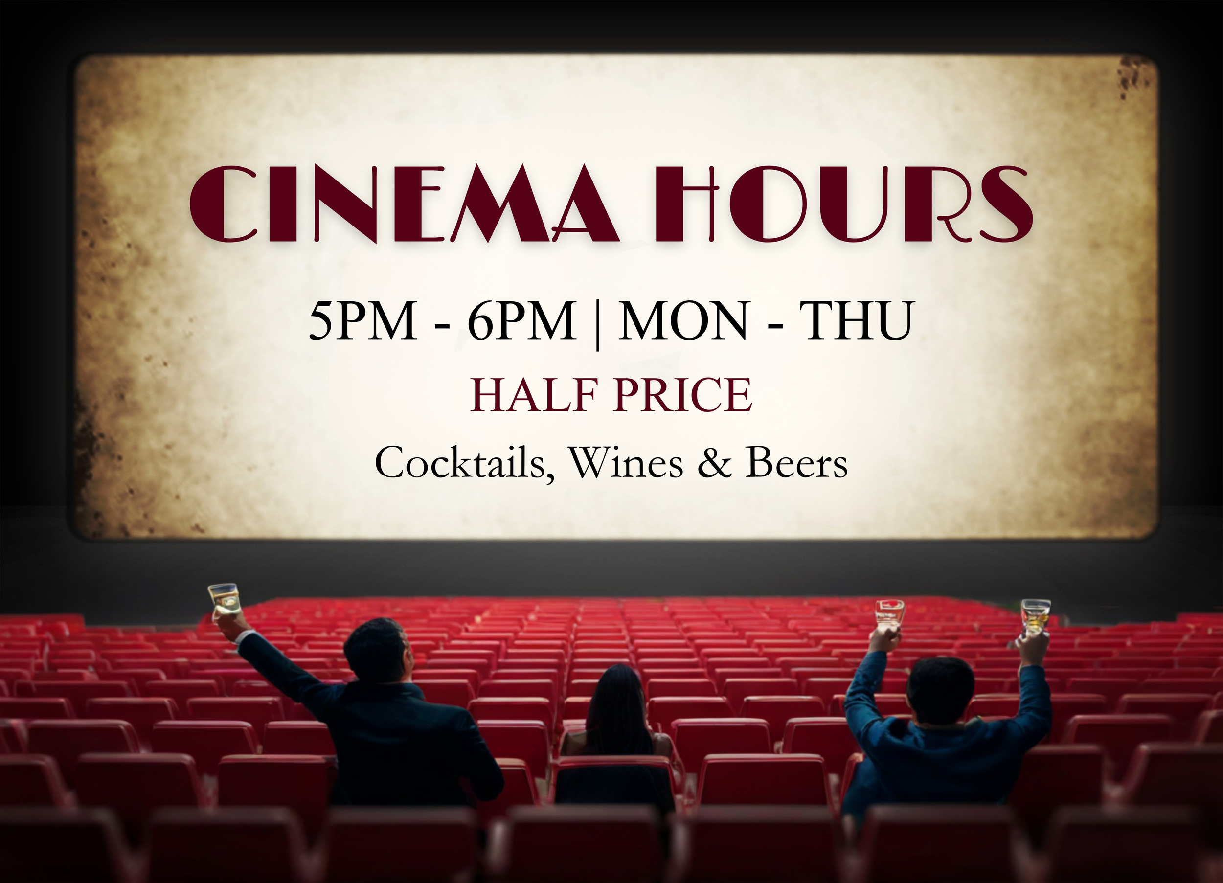Grab a cocktail, beer or wine by the glass before the clock hits 6pm — no extensions, no excuses! -